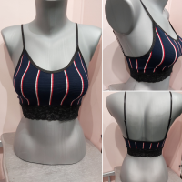Caraco en lycra incroyablement agréable à porter bordé de dentelle rouge et noire. Bijou à l'entre seins pour un côté chic. Convient du 85B au 95C. Bretelles réglables.