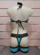 Body en dentelle noire et micro résille turquoise avec sa coupe sexy. Matière très extensible qui se fondra sur votre corps pour un résultat parfait. Paire de jarretières assorties. Convient du 85B au 95D pour le haut et du 36 au 40 pour le bas. Cou et dos à nouer.
